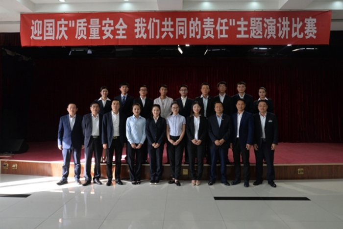 9月28日,公司迎國慶“質量安全,我們共同的責任”主題演講比賽決賽正式舉行??偨浝眈懔?、副總經理劉亞軍、副總經理張小揚蒞臨決賽現場,總部全體、基層單位代表觀看比賽。
