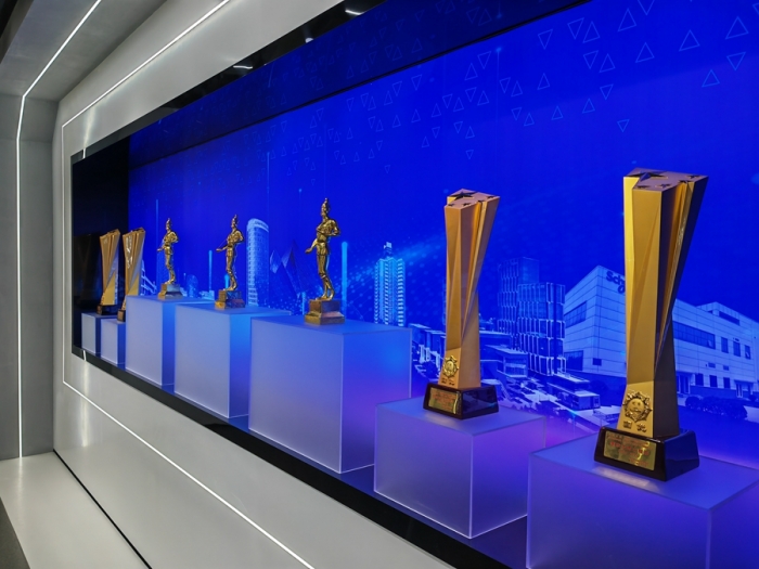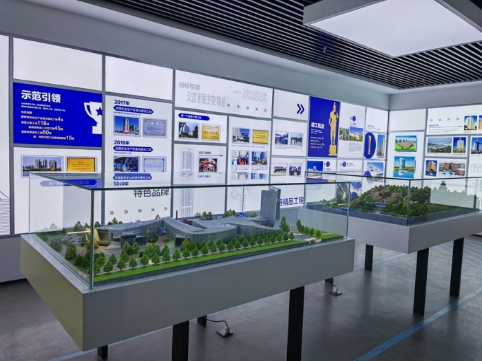 企業(yè)展覽館總面積516㎡,共分為四個(gè)展示單元,分別是:第一單元平地起高樓,主要展示集團(tuán)公司歷史沿革;第二單元風(fēng)雨筑輝煌,主要展示集團(tuán)公司壯闊征程;第三單元黨建強(qiáng)引領(lǐng),主要展示黨建、企業(yè)文化;第四單元公司榮譽(yù)展示;通過(guò)實(shí)物、展板、沙盤、模型、視屏、雕塑等表現(xiàn)手法,以圖、文、影、聲并茂的形式全方位呈現(xiàn)集團(tuán)公司走過(guò)的艱辛之路、創(chuàng)新之路、豪邁之路。