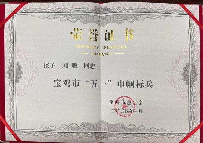 3月8日,在寶雞市總工會(huì)召開(kāi)的第七屆二次女職委全委會(huì)上,第十七項(xiàng)目部女職工劉敏被授予“五一巾幗標(biāo)兵”稱號(hào)。集團(tuán)公司始終為女職工提供干事創(chuàng)業(yè)的廣闊舞臺(tái),多年來(lái),先后有14名女職工獲得各級(jí)各類巾幗標(biāo)兵稱號(hào),2個(gè)集體被授予“五一巾幗標(biāo)兵崗”。