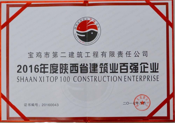 2016年陜西省建筑業(yè)百強企業(yè)